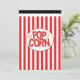 Cartons d'invitation à une soirée cinéma rayés rouge et blanc Popcorn