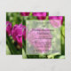 Une invitation de célébration du 50e anniversaire de mariage avec de belles tulipes violettes. Personnalisez facilement pour votre fête !