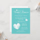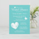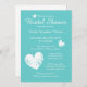 Cartons d'invitation de douche de mariée élégants turquoise bleu et blanc. Invitations personnalisées de fête de mariage avec petit nœud blanc. Forme personnalisable. Couleur de fond personnalisée. par exemple aqua. Texte de style beau et élégant avec des cœurs d'amour vintage.