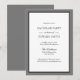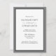 Cartons d'invitation de fête de bachelor gris et noir. Avant - blanc avec bordure grise et noire et texte classique. Arrière est gris uni.
