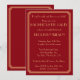 Cartons d'invitation de fête de Bachelorette rouge et or Art Déco Gatsby avec texte personnalisable