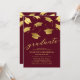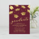 Élégantes invitations de fête de fin d'études avec un fond bordeaux, des bonnets de diplômé en or faux qui tombent, et un modèle de texte moderne facile à personnaliser.
