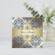 Invitation Cartons d'invitation de fête en damassé or et bleu