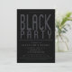 Cartons d'invitation de fête noire. Les cartons d'invitation de fête noirs et modernes présentent un texte élégant avec un look noir sur noir. C'est un excellent choix de carton d'invitation pour les enterrements de vie de jeune fille, les anniversaires de 16 ans, les fêtes d'adultes et plus encore ! Des fournitures et décorations de fête supplémentaires sont disponibles sur Metro-Event.com et Metro-Events sur Zazzle.