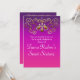 Cartons d'invitation de fête rose violet or princesse indienne. Personnalisez le recto et le verso pour n'importe quel événement.