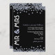 Une invitation à une fête d'anniversaire de mariage de diamant jolie et moderne en noir et blanc avec des accents bleu pâle. Sur les bords supérieur et inférieur de l'invitation sont dispersés des morceaux de paillettes en forme de diamant, formant une bordure partielle. Sur le côté gauche de l'invitation figure "M. et Mme" dans une police en gras, tandis que le texte de l'invitation est aligné sur le côté droit. Un mélange amusant de styles de polices modernes a été choisi pour accentuer le design.