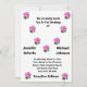 Personnalisez avec les noms de la mariée et du marié. Des roses roses s'étendent sur l'invitation avec le nom du couple sur le côté opposé de la page. Le lieu où se déroule le mariage, l'heure et la réception qui suit en bas de page.