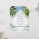Ce design présente des palmiers tropicaux sur une plage. La belle verdure des palmiers contraste avec le ciel et l'eau bleus. L'élément de diamant blanc opaque met en avant la typographie moderne. Une fusion parfaite de moderne et de chic. Design de verdure de palmier idéal pour un mariage à destination de plage tropicale. Design d'invitation de mariage de plage avec des éléments modernes. Des articles de papeterie de mariage assortis et d'autres formats d'invitation de mariage sont également disponibles.