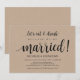 Cette carte d'invitation de mariage en fuite sur le thème kraft rustique est parfaite pour votre réception de mariage et votre fête de célébration post-mariage. Ajoutez vos détails dans une police / lettrage noir assorti.