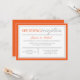 Cartons d'invitation de réception uniquement avec un design de typographie moderne orange et gris et une bordure orange et gris pour votre célébration post-mariage. Le verso est d'une couleur orange uni.