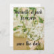 Cartons d'invitation de mariage rustiques pour enregistrer la date, avec des fleurs sauvages blanches.