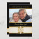 Cartes d'invitation élégantes et personnalisées pour une fête de 50e anniversaire de mariage -- Accents décoratifs vintage or et ivoire sur fond noir avec cadre photo et monogramme antique classique. Ajoutez votre propre photo et personnalisez le nom, la date et les détails pour votre célébration d'anniversaire de mariage spéciale. Enveloppes assorties, timbres et cartes de remerciement disponibles. **REMARQUE : Format adapté aux cartes d'invitation PETIT format 4,25 x 5,5. D'autres tailles et styles sont disponibles dans la galerie.