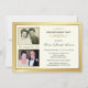 Créez vos propres invitations élégantes pour une fête d'anniversaire de 50 ans de mariage avec deux (2) encarts photo et de beaux accents dorés vintage sur fond blanc ivoire. Typographie de style lettrepressée formelle. Élégant, abordable et personnalisé de manière unique pour vous ! Ajoutez vos propres photos "Alors et Maintenant" et personnalisez le nom, la date et les détails de votre heureux événement. Peut être facilement personnalisé pour d'autres occasions spéciales et célébrations de milestones. Parfait pour un souvenir encadré que votre famille chérira pour toujours. **REMARQUE : Format pour les cartes d'invitation plates et petites. D'autres tailles et styles sont disponibles. © Teri Francis. Cartes de timbres et de remerciement assorties disponibles.
