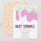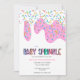 Cartons d'invitation Baby Sprinkle avec glaçage sucré et gouttes colorées au dos.