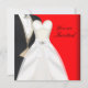 Cartons d'invitation pour soirée en smoking noir et robe de bal ivoire blanc rouge noir blanc