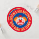 Cartes d'invitation pour l'anniversaire d'un enfant sur le thème du cirque. Invitations de fête rondes et colorées pour l'anniversaire des enfants. Texte et couleurs de fond personnalisables. Design avec un visage de mime mignon et le nom et l'âge de l'enfant. Typographie fantaisiste. Personnalisez pour un garçon ou une fille. Forme ronde découpée amusante. Créez des invitations circulaires pour les 4, 5, 6, 7, 8, 9, 10, 11, 12, 13 ans, etc. Modèle personnalisé pour les célébrations. Idée pour les fêtes avec un animateur / artiste de sculptures de ballons, magie, marionnettes, ventriloquie, jonglage, acrobatie, conte, numéros d'équilibre, musique, échasses, monocycle et plus encore.