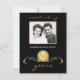 Cartes d'invitation personnalisées pour une fête d'anniversaire de 50 ans -- Élégants accents dorés vintage sur fond noir avec cadre photo et monogramme antique classique. Ajoutez votre propre photo et personnalisez le nom, la date et les détails pour votre événement heureux. Parfait pour les photos contemporaines ou vintage. Enveloppes assorties, timbres et cartes de remerciement disponibles. **REMARQUE : Format adapté aux cartes d'invitation PETIT format 4,25 x 5,5. D'autres tailles et styles sont disponibles dans la galerie.