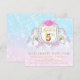 Cartons d'invitation pour une fête d'anniversaire de cinquième anniversaire avec de jolies licornes pastel et des fleurs sur un magnifique fond scintillant rose et bleu sarcelle. Ces cartons d'invitation pour la fête des 5 ans des filles sont facilement personnalisables pour votre événement en ajoutant simplement vos coordonnées. Il s'agit d'un design imprimé sans paillettes, etc.