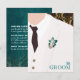 Ajoutez du style à l'enterrement de vie de garçon de votre meilleur ami avec des invitations habillées en smoking de Kustom By Kris. Le devant indique "Le Marié" et présente un homme en smoking devant un papier peint en brocart. Personnalisez le dos de couleur sarcelle foncée avec les détails de la fête d'enterrement de vie de garçon.
