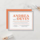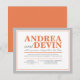 Cartes d'invitation pour la réception de mariage uniquement avec une typographie orange et grise. (Étant donné la précision de l'alignement de ce design, il est conseillé de cliquer sur le bouton orange "Personnalisez-le !" pour déplacer et redimensionner le texte si nécessaire.) Ces invitations sont utilisées lorsque le couple organise un mariage de destination ou une petite cérémonie privée, et n'invite ses invités qu'à la célébration post-mariage, la réception.