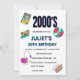 "Remontez le temps avec les invitations d'anniversaire 30 ans sur le thème de la fête des années 2000 !" Ces invitations vous transporteront dans l'ère inoubliable des années 2000, ce qui en fait le thème parfait pour votre fête d'anniversaire des 30 ans. Avec un espace vierge pour vos informations personnelles, ces invitations capturent l'essence des années 2000 grâce à leur design. Préparez-vous à célébrer et à faire un voyage nostalgique avec vos amis. Commandez les "Invitations d'anniversaire 30 ans vierges sur le thème de la fête des années 2000" dès aujourd'hui et préparez-vous à un retour en arrière lors de votre prochaine fête d'anniversaire !