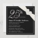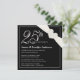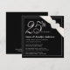 Cartons d'invitation pour une fête d'anniversaire de 25 ans argent et noir élégants et abordables avec écriture formelle et ruban romantique -- Personnalisez le nom, la date et les détails pour cette occasion heureuse. **REMARQUE : Format pour les cartons d'invitation CARRES. Cartes de timbres et de remerciement assorties disponibles.