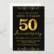 Célébrez votre anniversaire de mariage d'or avec style grâce à nos invitations de 50e anniversaire de mariage noir et or. Ce design moderne et élégant est parfait pour commémorer 50 ans d'amour et d'engagement. Impressionnez vos invités avec ces invitations sophistiquées, dotées d'une palette de couleurs intemporelle qui respire le luxe. Personnalisez-les avec les noms des conjoints et les détails de la fête pour un effet vraiment personnalisé. Commandez vos invitations de 50e anniversaire de mariage noir et or dès aujourd'hui et rendez votre célébration d'anniversaire d'or inoubliable.