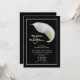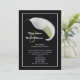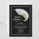 Les couples préfèrent souvent inviter des amis à une réception après le mariage au lieu d'une réception de mariage. C'est une excellente façon de faire savoir à tout le monde que vous êtes mariés et de célébrer votre mariage après la cérémonie. Cette élégante invitation de réception après le mariage à motif floral présente un lys calla blanc sur fond noir. Les noms de la mariée et du marié apparaissent à gauche du lys avec tous les détails de votre invitation de réception après le mariage ci-dessous. Une invitation de réception après le mariage très élégante et magnifique. Copyright henishouseofpaper