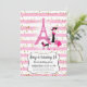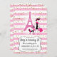 Cartons d'invitation rose pour fête d'anniversaire française pour fille. Voici un magnifique modèle d'invitation avec la Tour Eiffel. Vous pouvez modifier votre nom et d'autres détails pour inviter vos amis à la fête. Choisissez d'autres produits avec design français rose pour la fête dans notre collection.