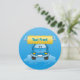 Caricature bleue souriante voiture laver sous pinceau de lavage de carrelage.