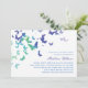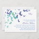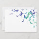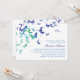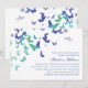 Une invitation de mariage fraîche et rêveuse avec des silhouettes de papillons en cascade dans des nuances de bleu, de sarcelle et de vert menthe sur un fond blanc. Le dégradé ombré aux tons frais crée une atmosphère aérienne et éthérée, tandis que la calligraphie bleue coordonnée ajoute une touche romantique. Un choix magnifique pour une célébration printanière ou estivale. Chaque détail est entièrement personnalisable.