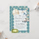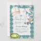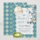 Cette invitation de baby shower personnalisée argyle bleue présente une scène de golf avec un drapeau de trou, un chariot de golf, une casquette et une guirlande et la phrase 'Faisons la fête par-tee', créant un design de thème golf cool et stylé. Le motif bleu ajoute un look calme et moderne.
