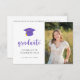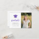 Cette invitation à la remise des diplômes présente un thème simple noir et blanc avec un casquette violet et un goût d'or. Ajoutez une photo et un texte de personnaliser sur le devant et le dos pour inclure tous les détails de votre fête de remise de diplômes.