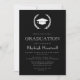 Ce design classique d'invitation à la fête de remise de diplômes comprend une couronne de laurier blanc encadrant une casquette de graduation en blanc sur un arrière - plan noir. L'année de classe modifiable apparaît dans la police serif ouverte en noir sur le casquette. Personnalisez le texte avec le nom du diplômé et les détails du parti. Le dos de la carte est noir. Idéal pour un diplôme d'études secondaires, collégiales ou universitaires.