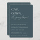 CASQUETTE, GOWN, ça baisse ! Invitation contemporaine à la fête de remise de diplômes. Design de typographie moderne sur des arrière - plans de couleur turquoise muet avec support motif géométrique faux argent.