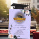 Invitation Casquette noir, Fleurs Clair Purple Graduation
