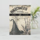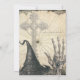 Une version vieillotte d'un classique Costumes et Cocktails Halloween sur invitation personnalisée. Doté d'un casquette de sorcière sombre en bas à gauche et d'un éffrayant fantôme comme une main squelette en bas à droite. La main squelette est recouverte d'un bijou victorien. Dans l'arrière - plan trouver une toile d'araignée et une croix celtique. Customisez l'avant de cette invitation à la fête des Costumes et Cocktails d'Halloween avec tous vos détails. Le verso de cette invitation présente la même illustration.
