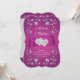 Cette faire-part de mariage romantique et spectaculaire cassis violet et argenté en forme de crochet floral a un RIBBON IMPRIMÉ et BOW, une paire de diamant et de parties scintillant IMPRIMÉE joint coeurs de bijoux, et look métallique fleurs en argent sur elle. ****VEUILLEZ NOTER que tout va s'imprimer tel qu'il apparaît sur votre écran, donc si vous avez des problèmes de typographie, d'alignement ou de dimensionnement, veuillez me contacter pour obtenir de l'aide AVANT de commander. Je ne peux rien faire une fois la commande passée avec Zazzle. Si vous avez besoin d'autres articles correspondants, envoyez un courriel à niteowlstudio@gmail.com.
