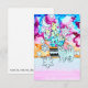 It's a colorful and vibrant Christmas card design depicting a cactus decorated with string lights and a suspicious-looking kitty against a starry background with snow falling from the sky.