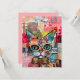Invitation Cat Mixed Mixed Paper Collage Greeting Card