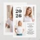 Ces invitations modernes et élégantes à la fête noire et blanche présentent trois photos du diplômé, plus leur année de remise des diplômes 2025 en gras, texte noir sur un arrière - plan blanc simple.