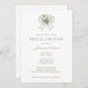 Présentant une belle invitation de fête de fiançailles catholique élégante conçue sur mesure avec une image vintage de la Vierge Marie, Notre-Dame de Grâce superposée sur un nœud crème avec un rosaire sacré. Tout le texte et les polices peuvent être modifiés.