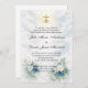 Invitation Catholic Gold Crucifix Blue and White Floral