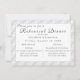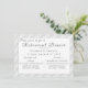 Design présente l'apparence de dentelle blanche comme arrière - plan à vos informations, qui est affiché dans une police argent contre un support blanc. En-tête : "Rejoignez-nous pour un dîner de répétition en l'honneur de" Les noms du couple ainsi que la ville et l'état de l'événement sont affichés juste en dessous de l'en-tête. La première initiale du nom de famille du couple est affichée dans une grande police blanche sur le côté opposé. Très élégant. Conçu pour coordonner avec la collection White Lace Catholic Monogrammed Mariage Suite.
