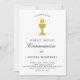 Simple, élégant et moderne, cette invitation religieuse de la Première Sainte communion présente un chalice d'or.