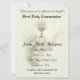 Belle Traditionnelle Première Sainte Communion Invitation. avec du chalice d'or, de l'hôte et des lis. Le dos est un design blanc pâle et moucheté. Tous les textes et polices peuvent être facilement modifiés. Nous offrons également des invitations Communion assorties, cartes, faveurs, étiquettes, etc., avec ce design. Visitez la Douche des Roses Shoppe sur Zazzle et parcourez notre grande collection First Holy Communion.