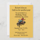 Ceci est une invitation recto-verso avec un cowboy chevauchant un cheval qui se cabre sur le devant et de nombreux champs de texte au dos pour remplir les détails de votre fête. Le numéro d'âge est censé ressembler à une marque sur la hanche du cheval.