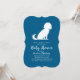 Inclure le grand frère ou la soeur en fourrure bébé dans la célébration avec cette adorable conception de baby shower de chien Cavalier King Charles Spaniel! Parfait pour un amoureux du chiot avec un bébé en route. Le Cavalier King Charles Spaniel se trouve à côté d'une adorable calèche vintage. Le bleu est parfait pour un bébé en route !
