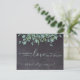 Tout ce dont nous avons besoin, c'est d'amour et d'un officiant ! Demandez le service d'officiant pour votre mariage avec ces modèles modernes mais rustiques avec feuillage de eucalyptus sur ardoise grise, élégantes cartes "voulez-vous nous marier". Ces demandes d'officiant avec eucalyptus présentent des feuilles de feuillage de eucalyptus sage élégantes, un script délicat sur ardoise grise. Personnalisez ces invitations d'officiant de mariage avec votre message personnel. Ces cartes uniques "voulez-vous nous marier" avec feuillage feront une impression durable, votre prêtre, pasteur ou officiant dira certainement oui ! COPYRIGHT © 2020 Judy Burrows, Black Dog Art - Tous droits réservés. Invitation d'officiant "Voulez-vous nous marier" rustique avec eucalyptus
