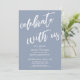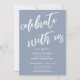 La distinction de cette suite est due à la police de caractères moderne et manuscrite utilisée pour les phrases d'accentuation. Dans ce morceau, la police de caractères manuscrite a été utilisée pour créer un graphique représentant les mots "célébrez avec nous". Utilisez les champs du modèle pour ajouter vos informations personnelles et rendre ce design moderne unique vôtre. Le fond bleu poussiéreux peut être changé en n'importe quelle couleur que vous préférez. N'hésitez pas à nous contacter pour toute demande spéciale ou pour une aide à la personnalisation. // 100 //
